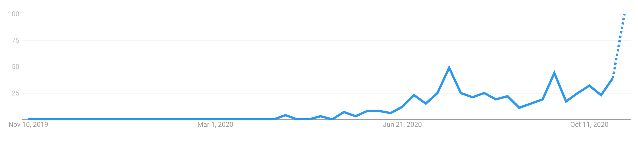Doomscrolling started with COVID but really came into it's own during this election. (See the Google Trends graph below.) COVID had one kind of doomscrolling—you'd scroll to see which new celebrity had COVID, or the new highest point on the exponential. Election Doomscrolling is a slightly different beast—you're scrolling to see the latest vote count or baseless Trump tweet signaling the end of American democracy.