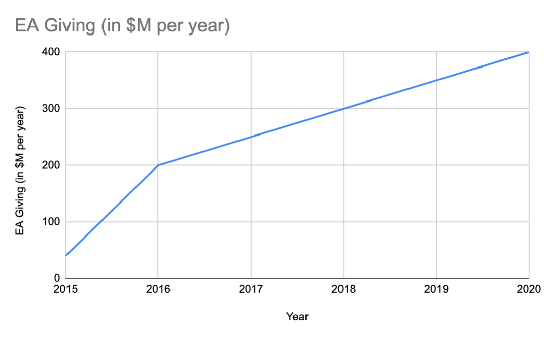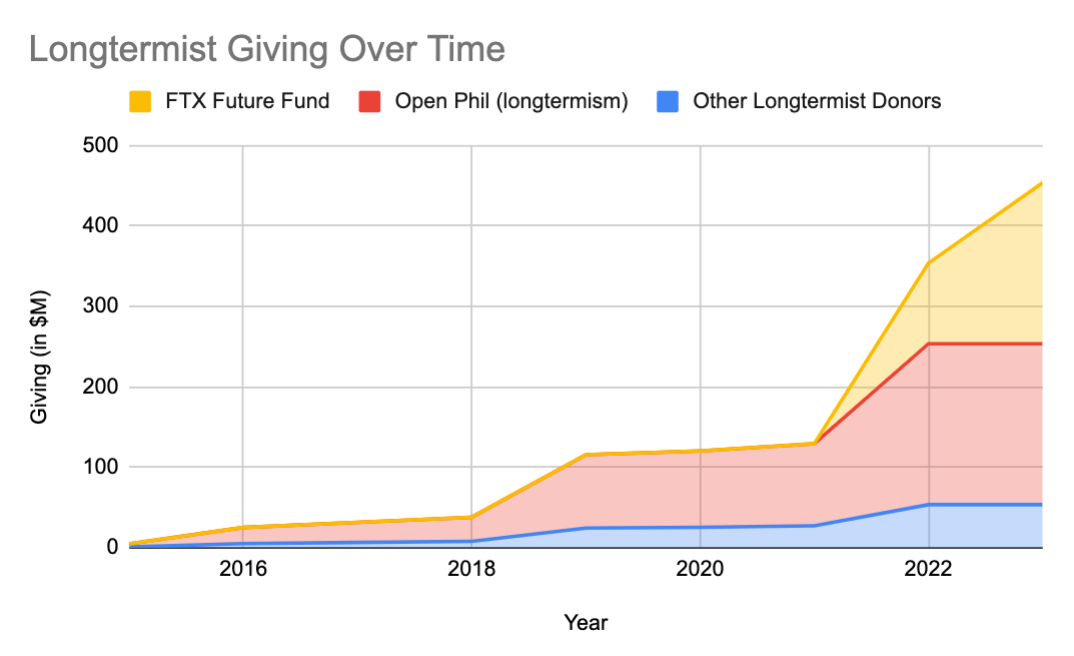 But FTX Future Fund is about to drastically increase it even more. They're trying to give $100M in 2022 alone. Here's what the graph will look like going forward:
