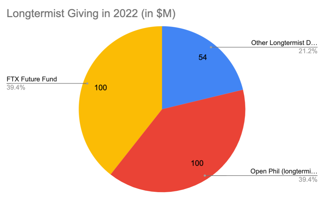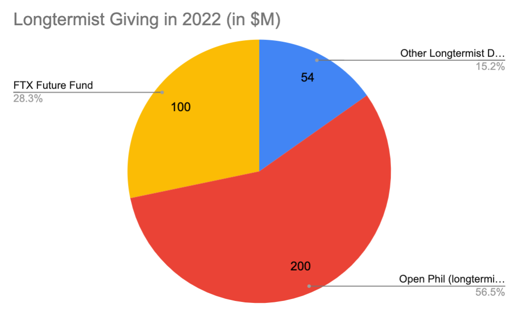 If they keep their longtermist grantmaking at current levels, around $100M, the 2022 pie chart looks like this: