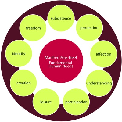 However, Maslow's model has been criticized for being too individualistic (self-actualization is the top!). In contrast, Manfred Max-Neef's created (a more collectivist) framework for Fundamental human needs. Although the collectivist vs. individualist framing resonates with me, I don't personally find this framework clear/compelling, but here it is: