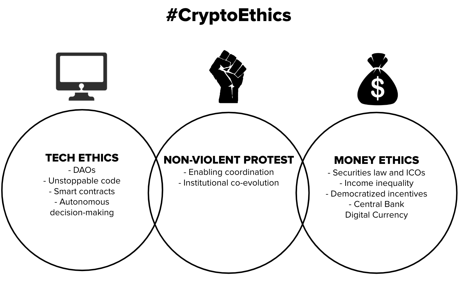 - Why crypto as a nonviolent movement makes crypto ethics more confusing. (The crypto community already has aspects of ethics baked in.)